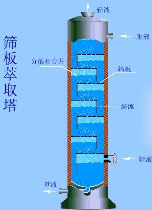 工作原理:往復(fù)篩板塔又稱振動(dòng)篩板塔。塔內(nèi)裝帶有許多塊篩板的往復(fù)振動(dòng)的中心軸的設(shè)備,中心軸通過塔頂?shù)尿?qū)動(dòng)裝置帶動(dòng)板串在塔中做垂直方向的往復(fù)運(yùn)動(dòng),從而對塔內(nèi)逆流流動(dòng)的兩液相起攪拌和分散作用。板串往復(fù)運(yùn)動(dòng)的振幅、頻率可以調(diào)節(jié),由于往復(fù)篩板塔具有處理量大、效率高、操作彈性大和結(jié)構(gòu)簡單等優(yōu)點(diǎn)而廣泛運(yùn)用在制藥、石油化工、濕法冶金和廢水處理等工業(yè)部門。