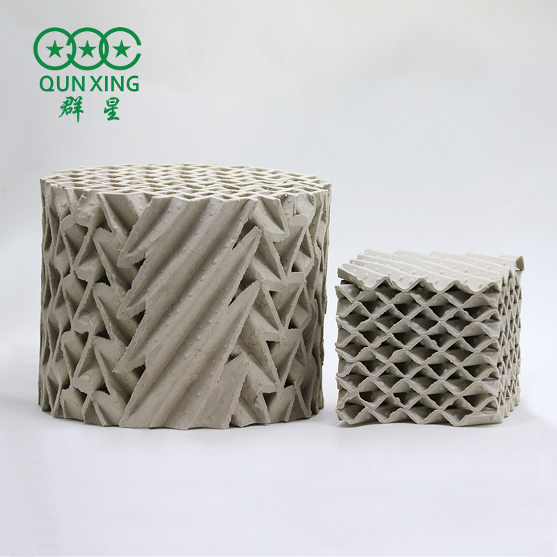 在精餾裝置上被廣泛應(yīng)用。它具有以下特點(diǎn): 1.填料上端和下端的通道垂直設(shè)置,并與凸條 硫酸裝置中干燥塔和吸收塔大多采用耐酸堿性 之間所形成的傾斜狀的通道圓滑過(guò)渡連接當(dāng)液體 能良好的陶瓷填料。傳統(tǒng)的干吸塔基本上都采用散 流經(jīng)填料層本體時(shí)液體能垂直地從上到下進(jìn)行流